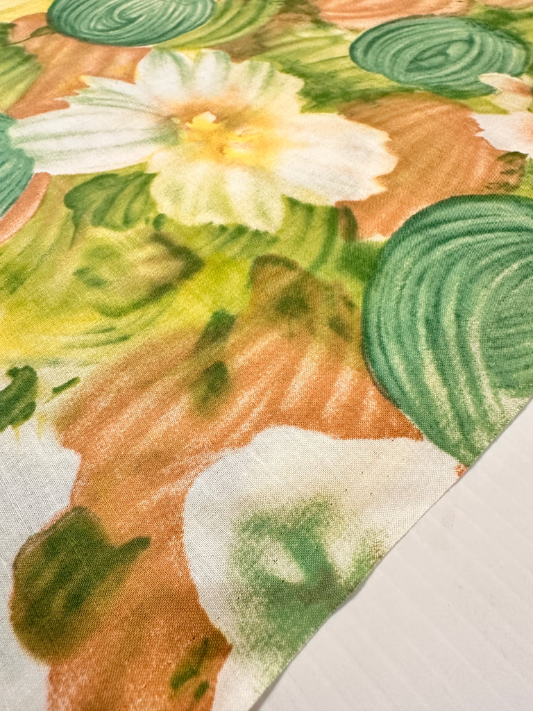 Fabric/Fibre: Light weight densely woven cotton poplin with a bright flowers and fruit? pattern.