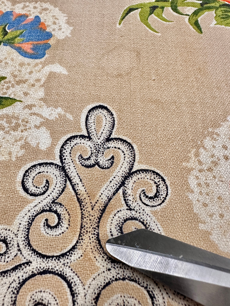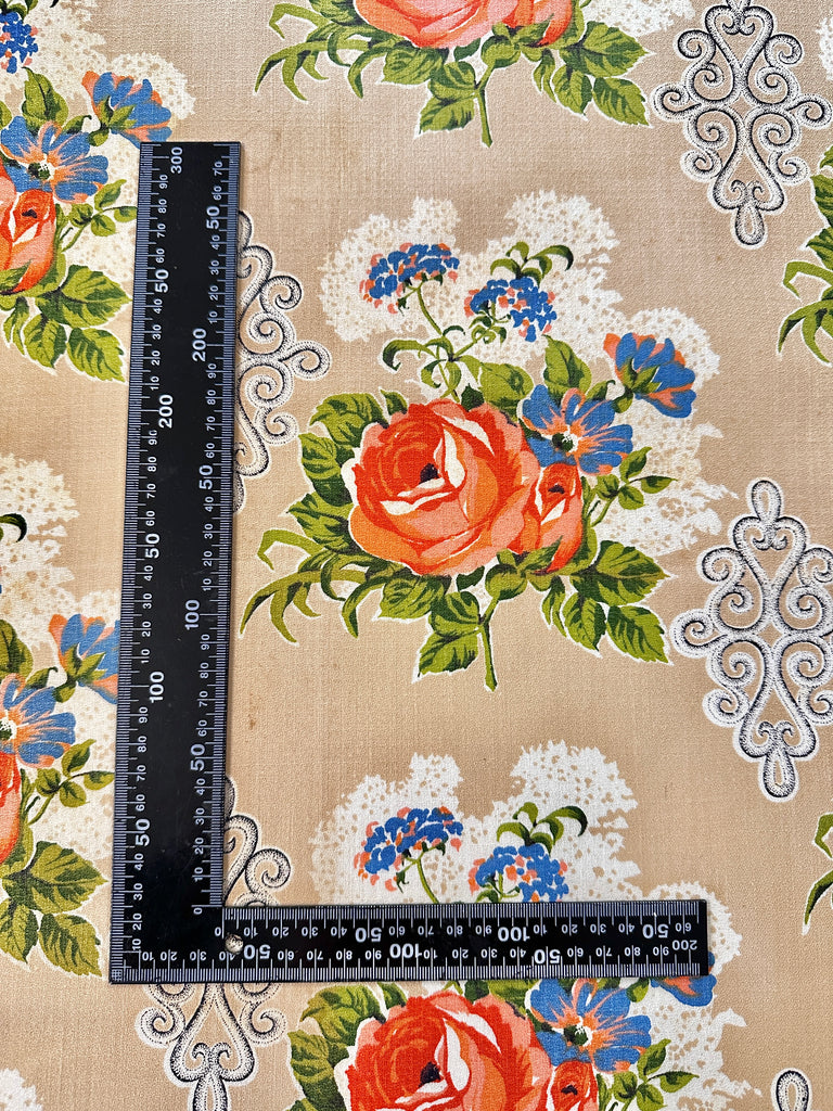 FAT QUARTER Vintage Fabric 1950s Flowers on Tan Cotton Cretonne 43cm x 50cm *marks
