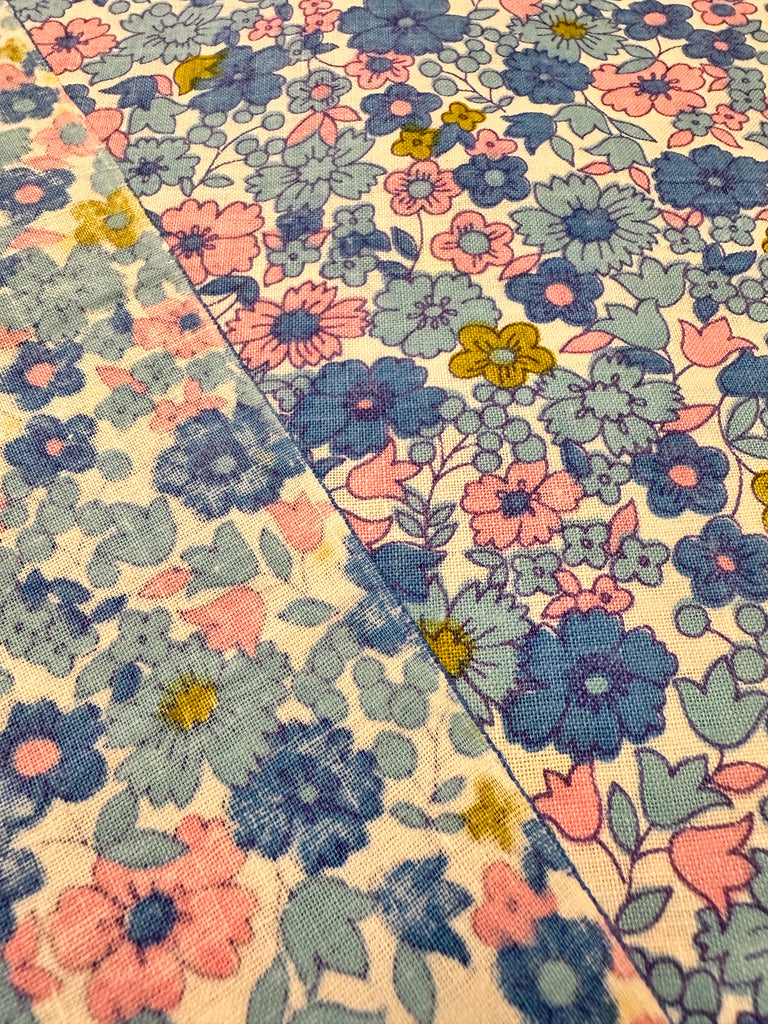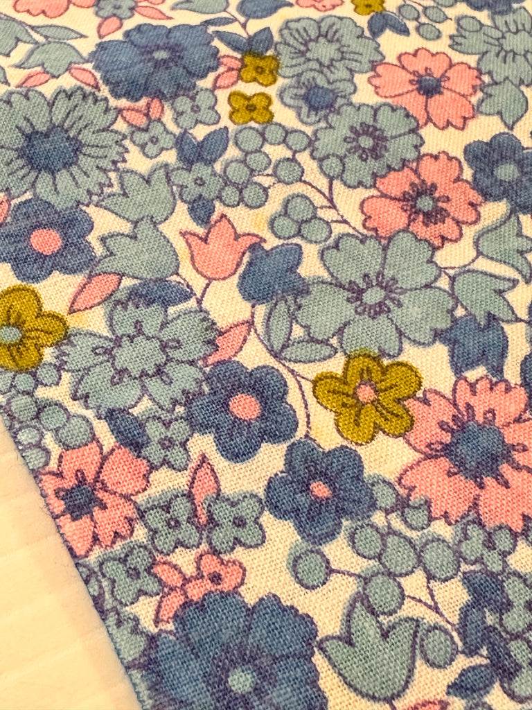 LAST PIECE Vintage Fabric 1960s Bright Retro Floral Pink Blues Cotton 86cm x 50cm