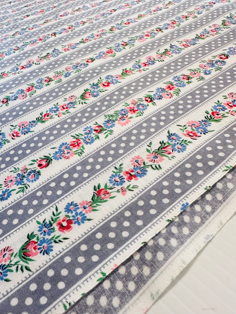 Vintage Fabric 1940s 50s Absolutely Delightful Small Flowers w/ White Dots on Grey Cotton 88cm Wide