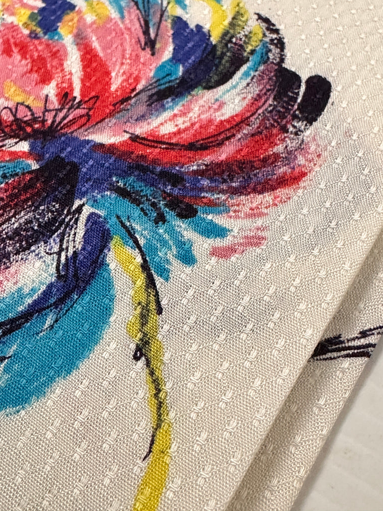 Fabric/Fibre: this fabric is truly magical. It’s a light weight dress cotton with a rayon blend and it features a beautiful flower print on a gently textured base.