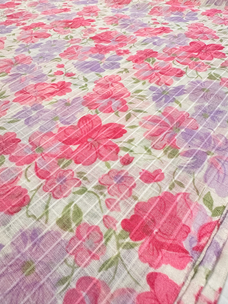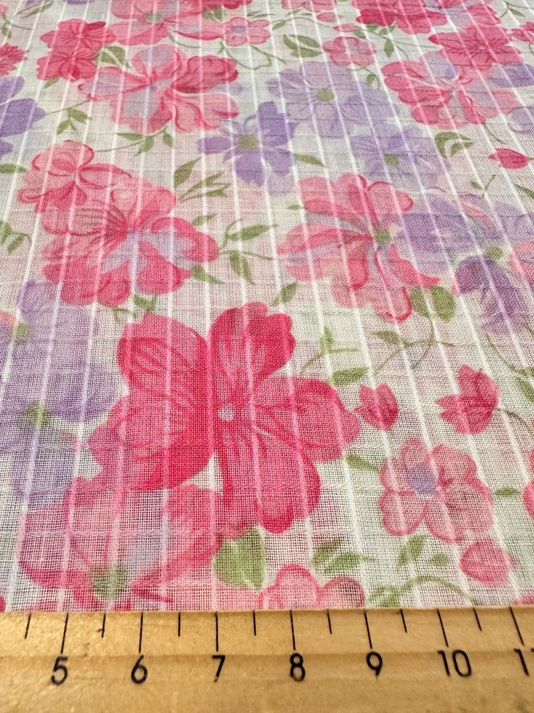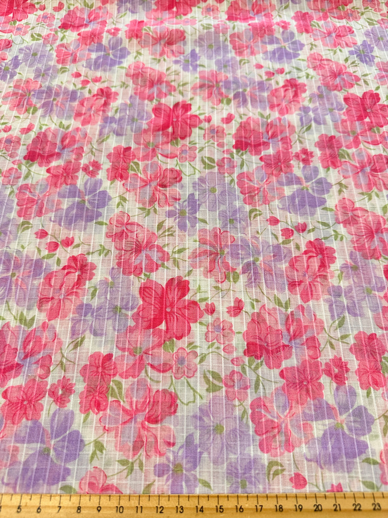 Vintage Fabric 1960s Bright Pink Lavender Floral on Textured Blend 88cm Wide