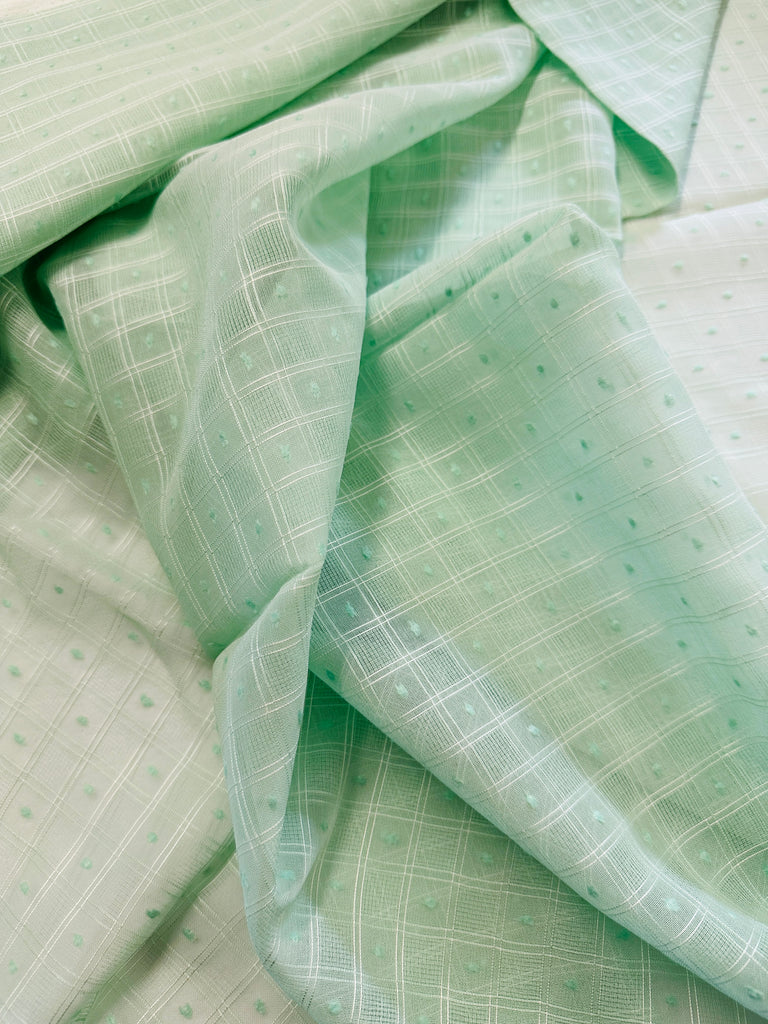 Vintage Fabric 1960s Tootal Robia Fancy Weave Dotted Swiss Cotton Pale Mint 88cm Wide