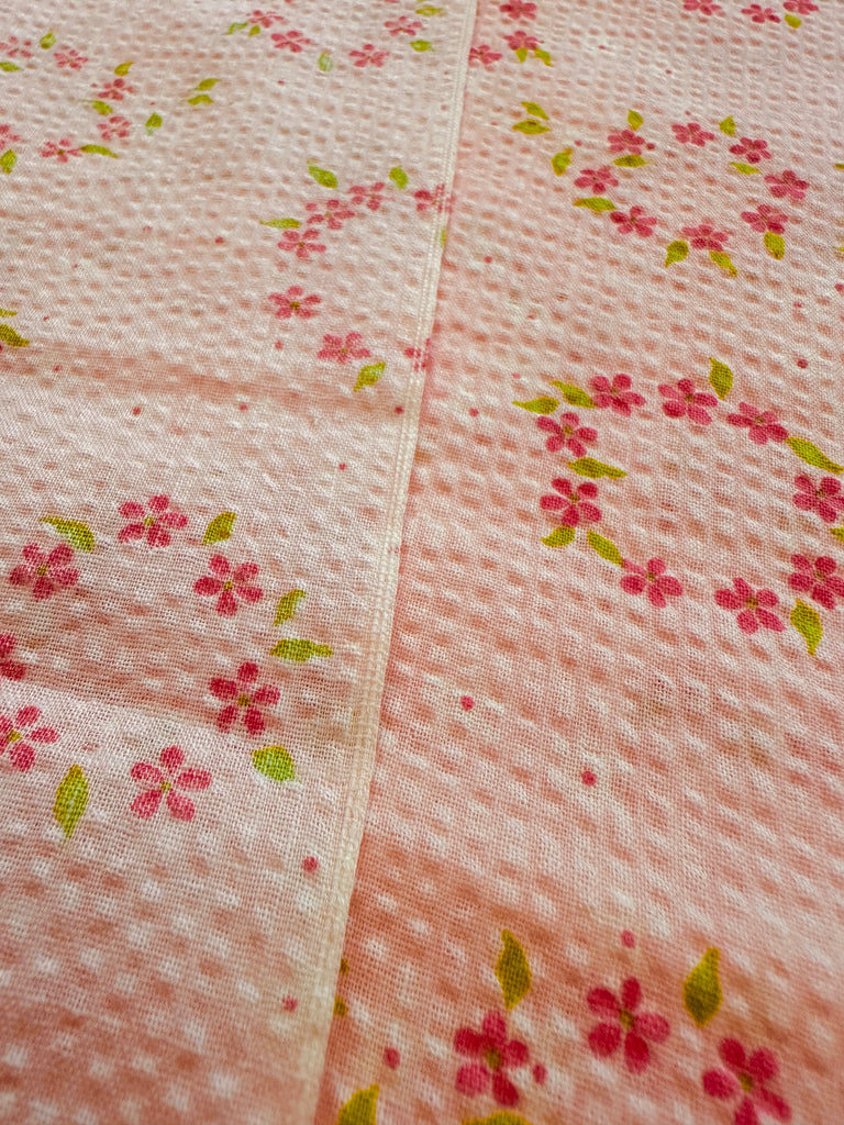 Vintage Fabric 1960s Pink Flowers on Pink Cotton Plisse 88cm Wide