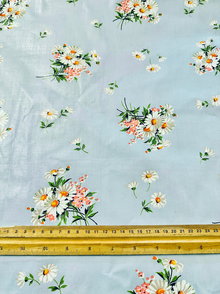Vintage Fabric 40s 50s Rare Chintz Dress Cotton w/ Pretty Bouquets on Sky Blue 88cm Wide