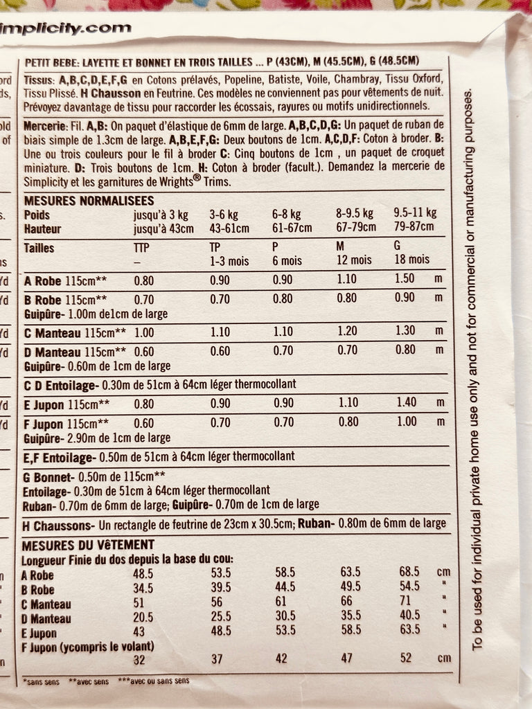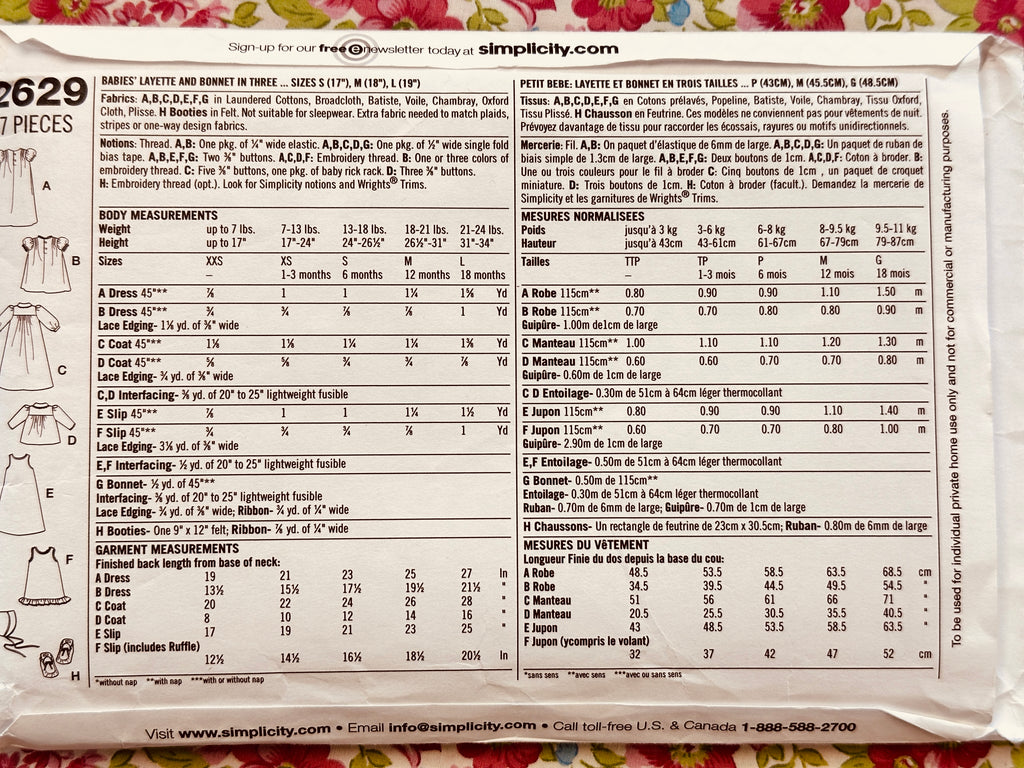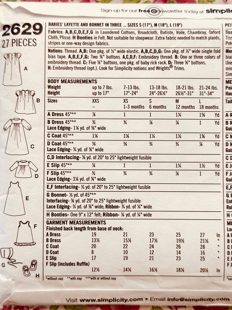 BABIES’ LAYETTE + BONNET IN 3 SIZES: Simplicity 1948 Re-Issued Sewing Pattern 2011 Sizes XXS-L Complete FF *2629
