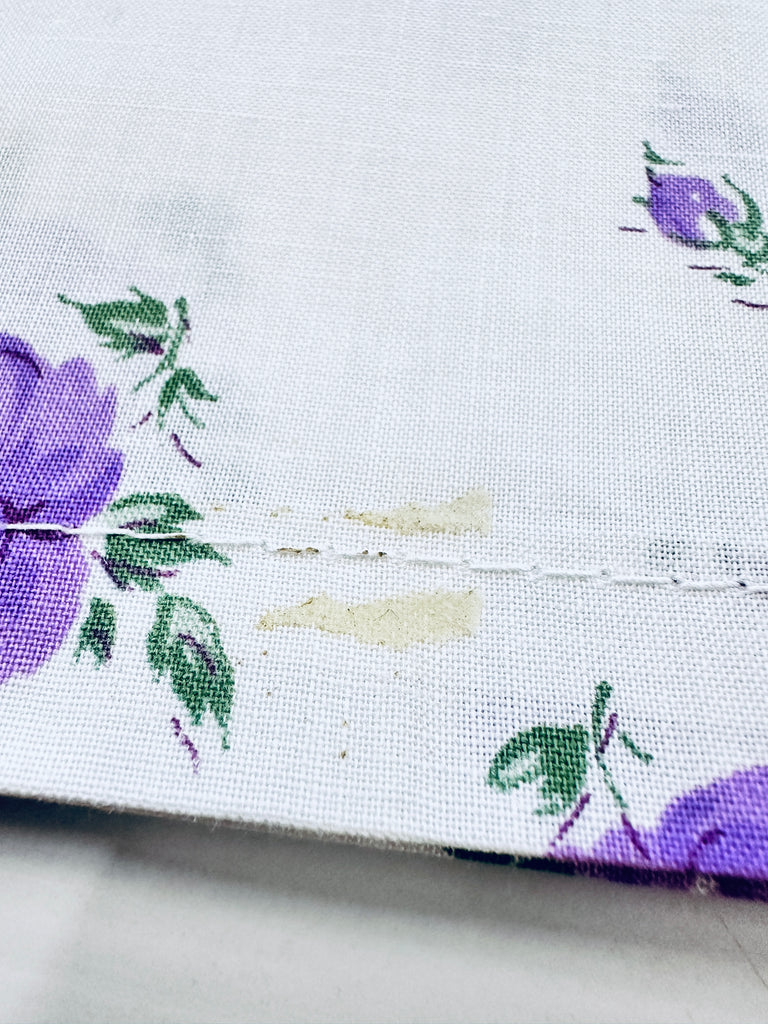 Fabric: beautiful lavender roses on crispy white cotton pillow case.