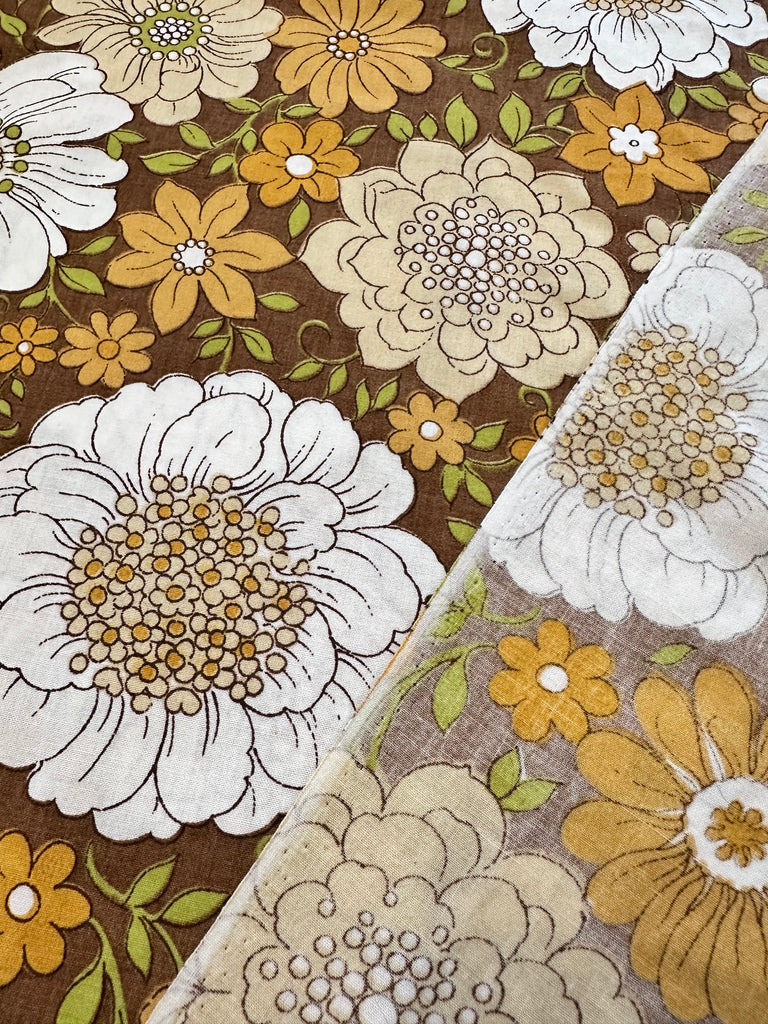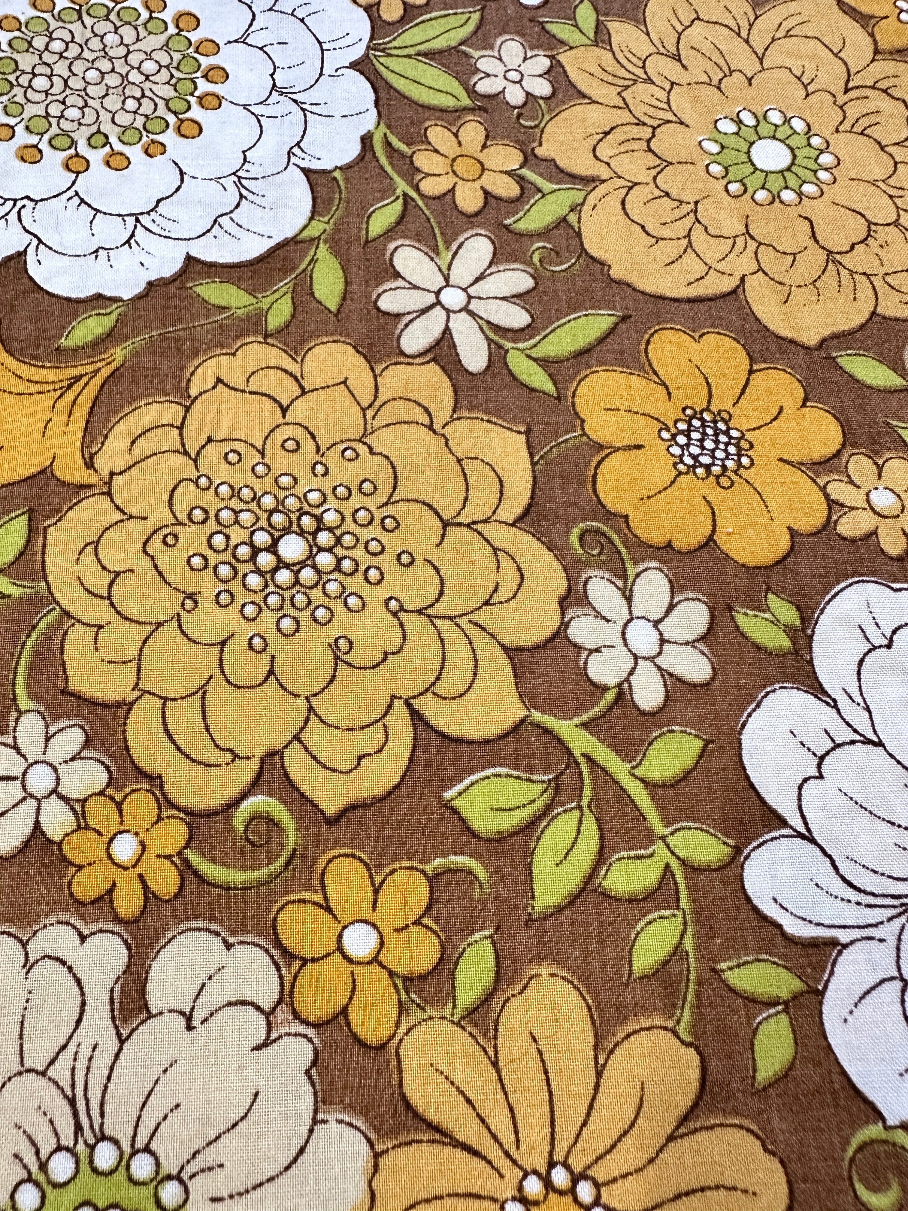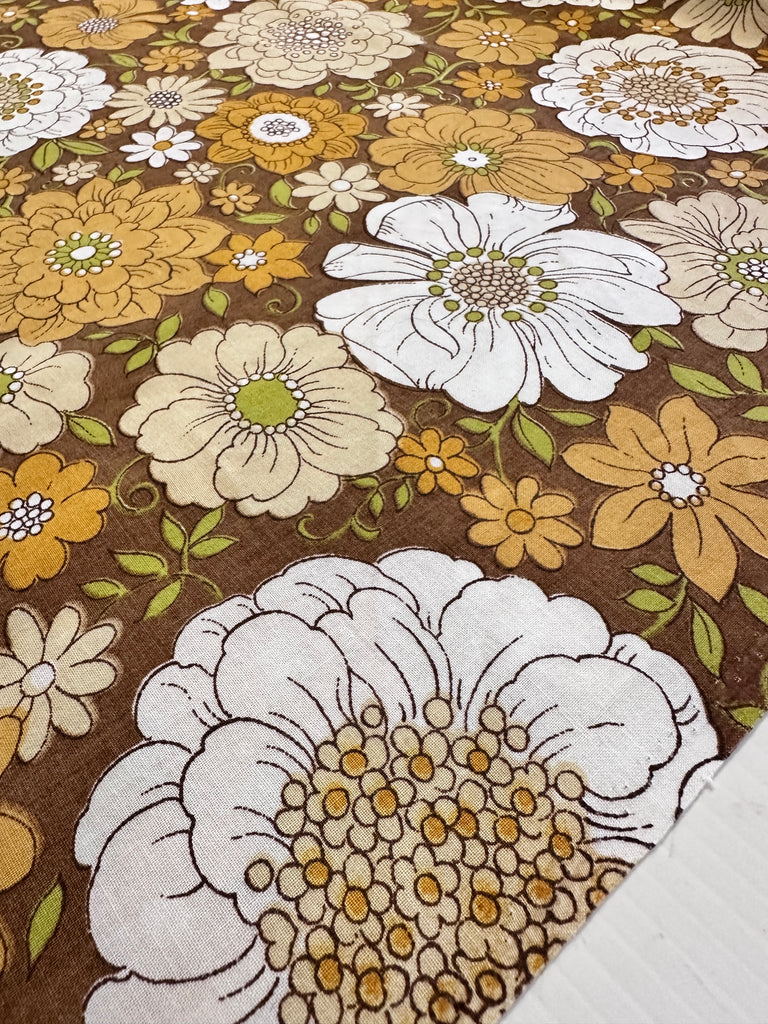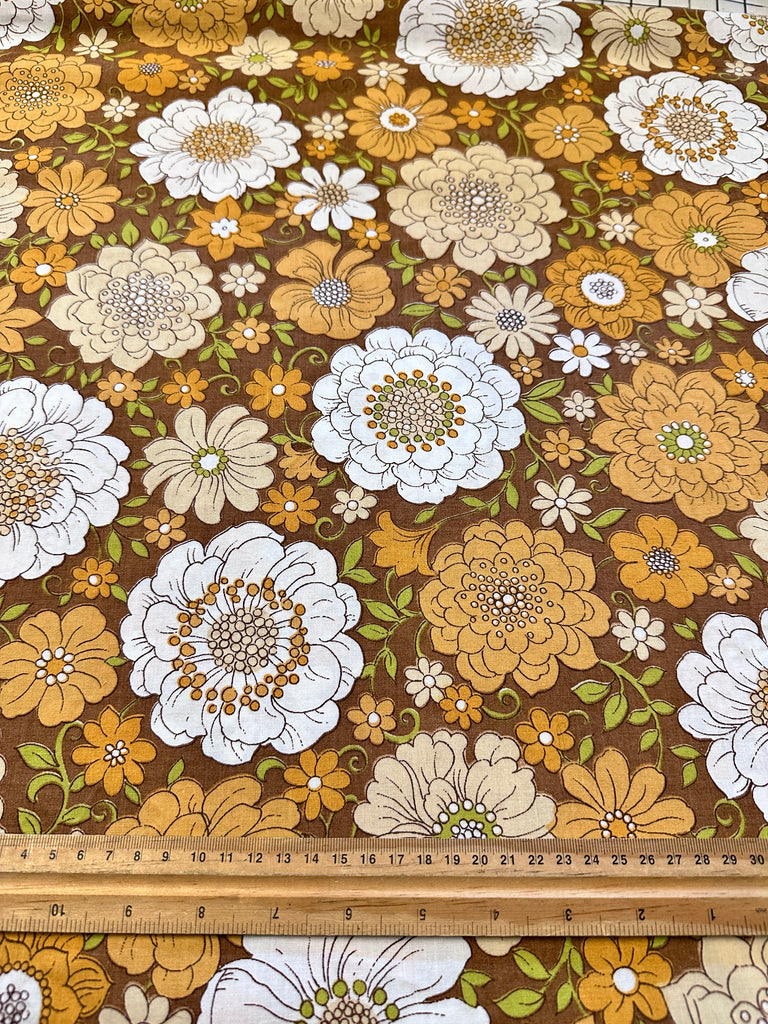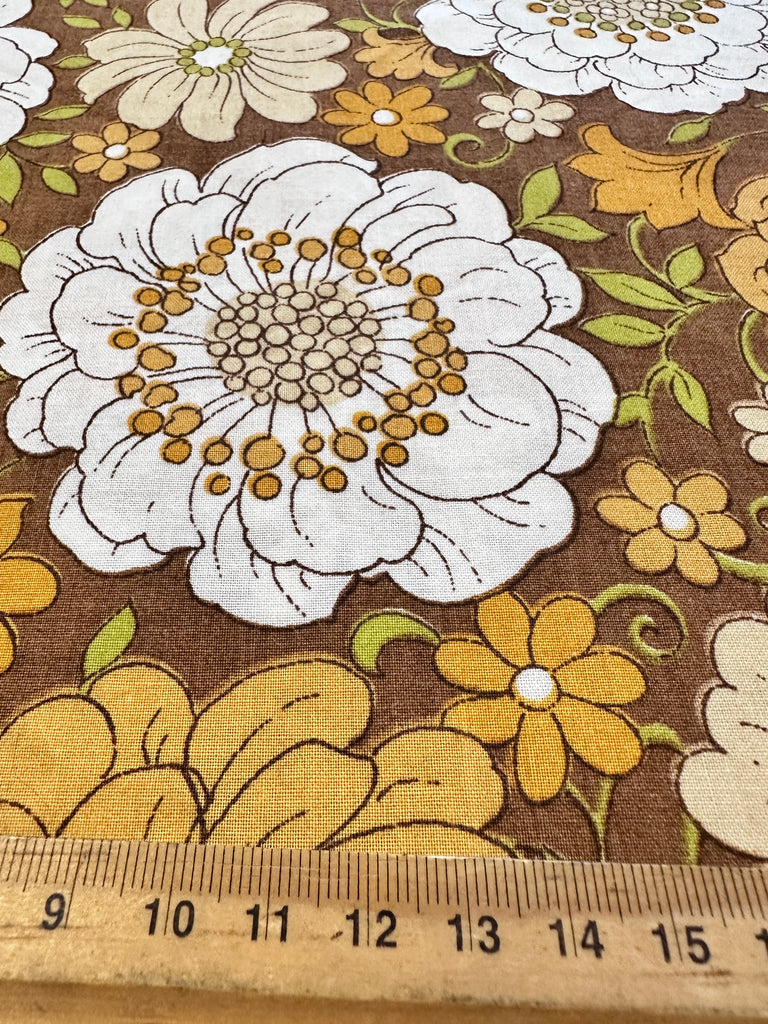 FAT QUARTER Vintage Fabric 1970s Sheridan Cotton Blend Sheeting Retro Flowers on Brown 50cm x 50cm