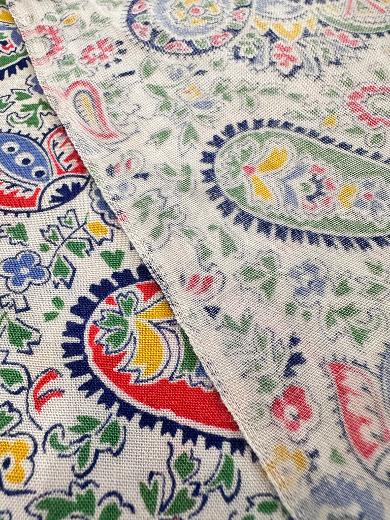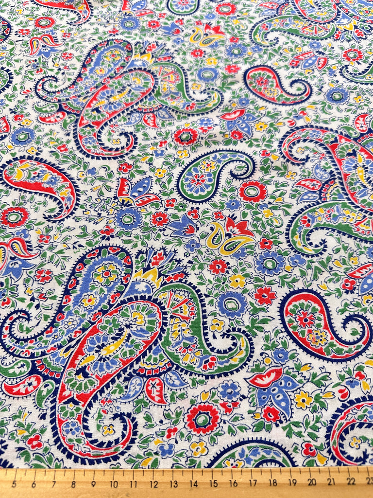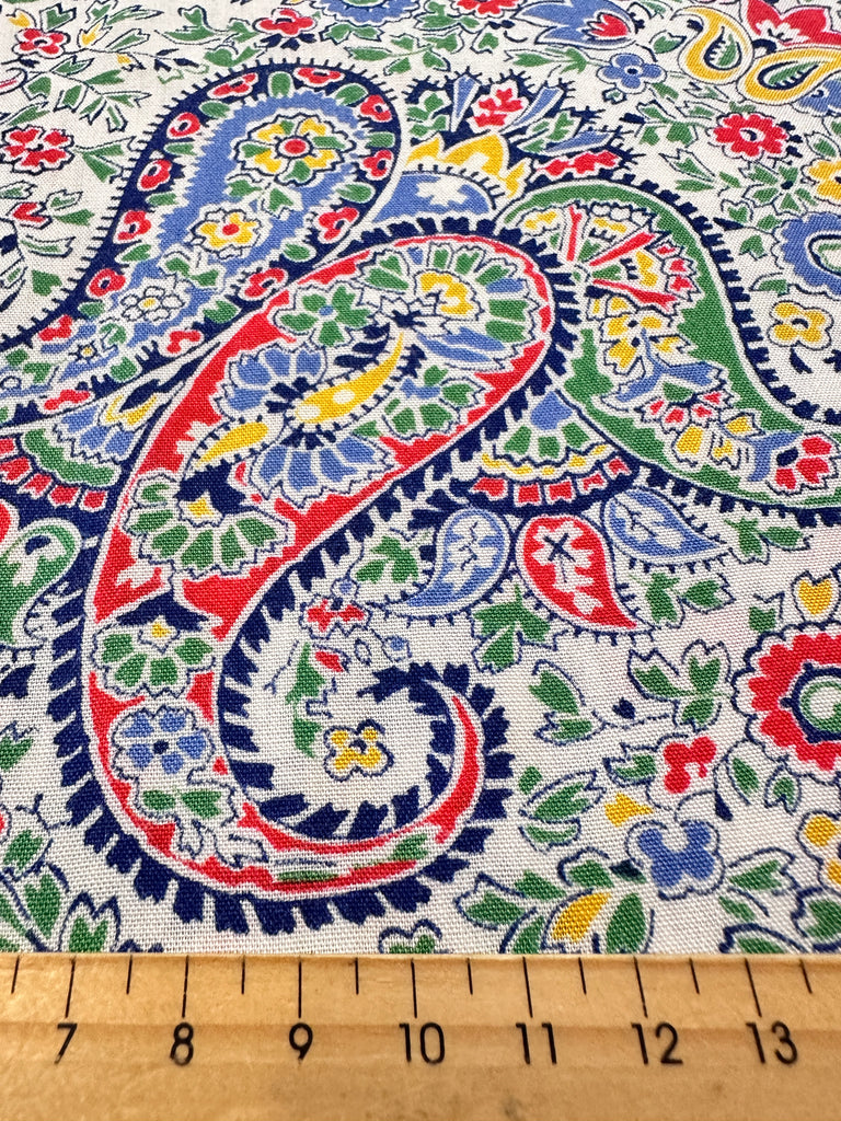 REMNANT Vintage Fabric 1950s Bright Paisley on White Cotton 39cm x 37cm