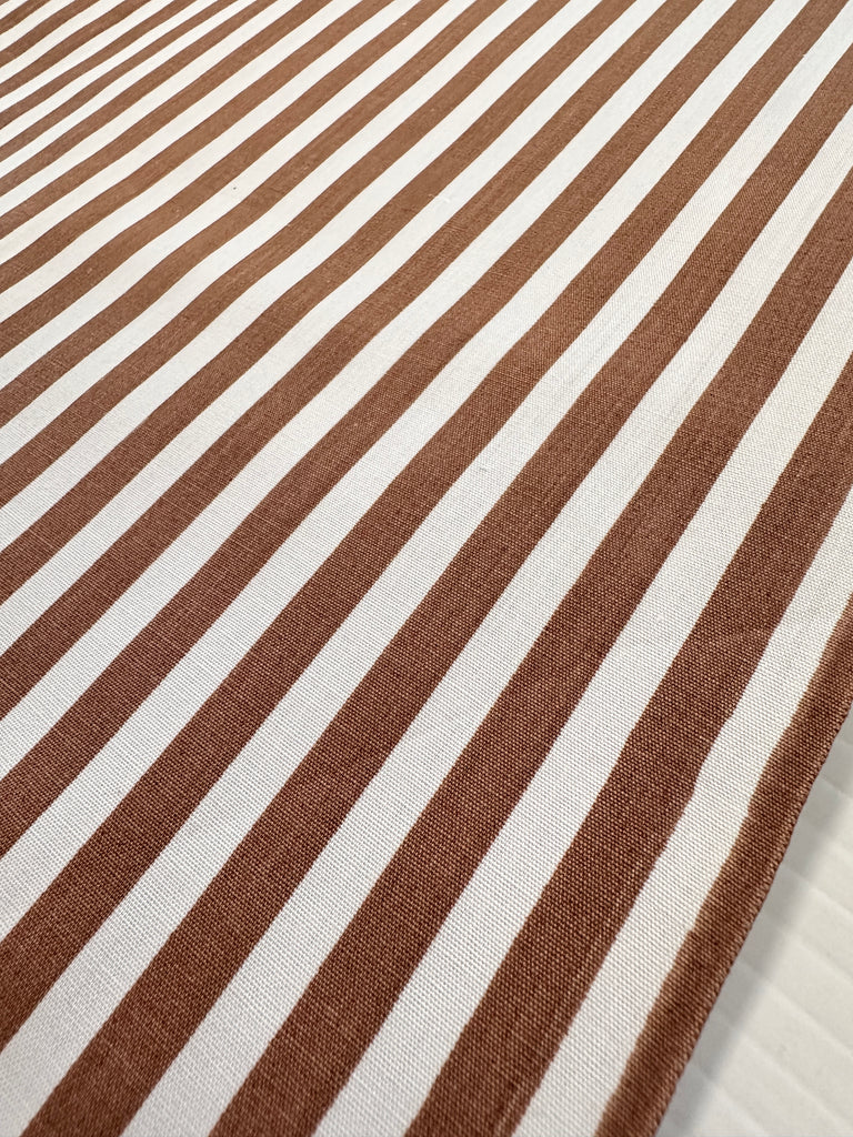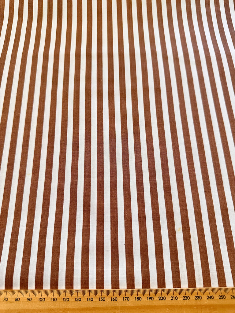 Vintage Fabric 1950s 1960s? Classic Chocolate Stripe on Crispy Cotton 88cm Wide