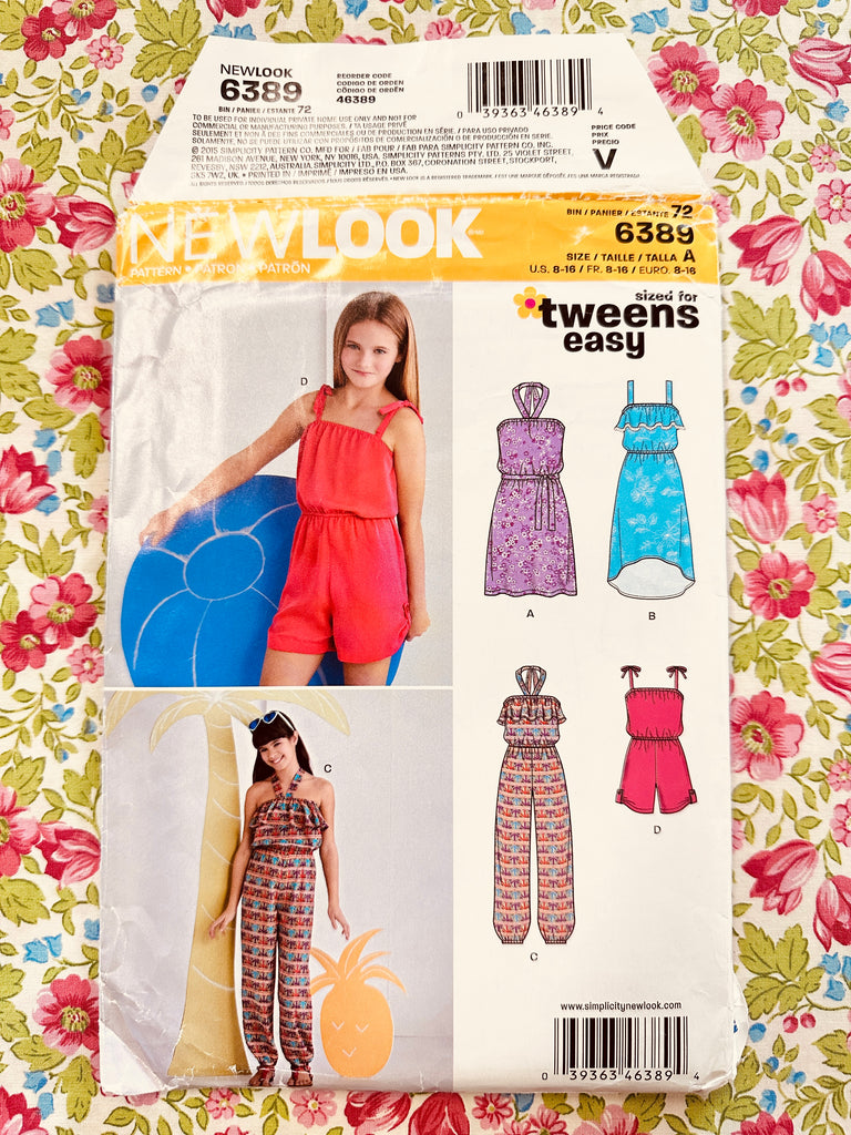 GIRL’S DRESS, ROMPER + JUMPSUIT: New Look Sewing Pattern Tweens Easy 2015 Sizes USA 8-16 Complete FF *6389