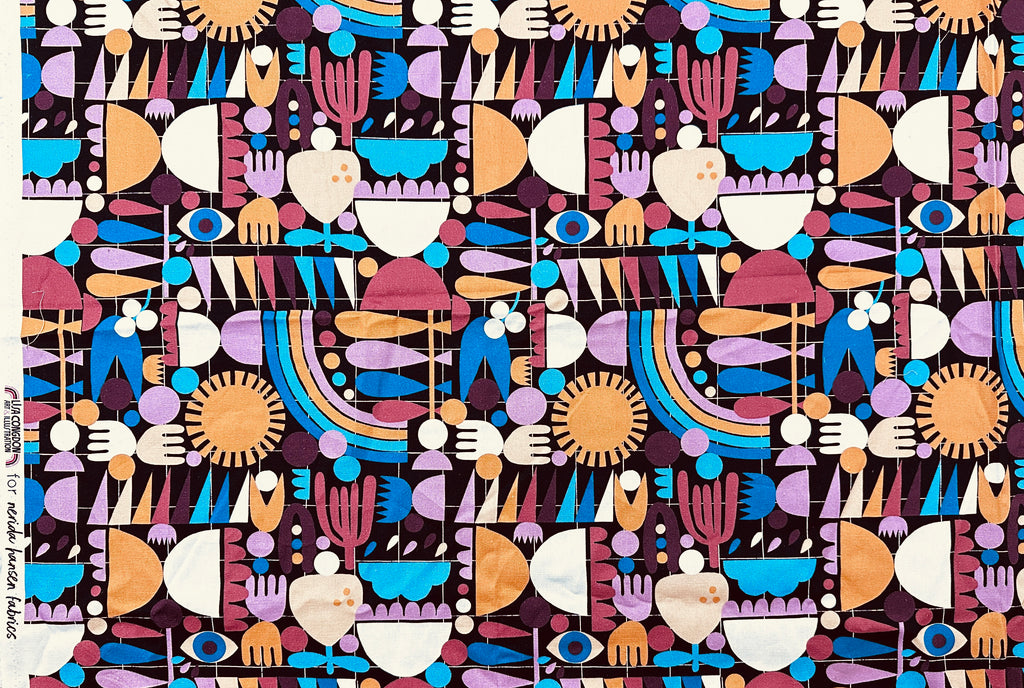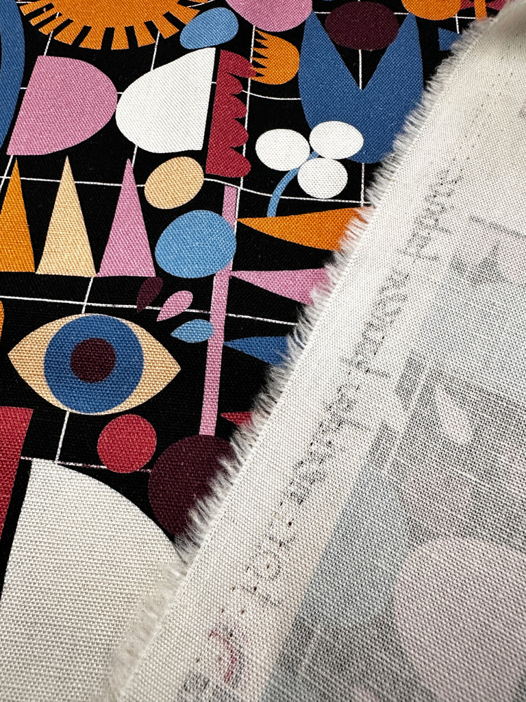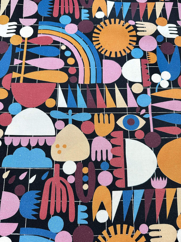 Fabric/Fibre: Lisa Congdon is a hero of mine - I love her morals, ethics, and her designs, even more! She’s an illustrator based in Portland, USA and has been a highly sought after creative for many, many years. This design is called Grid Shapes and the base is black with white grid lines. Manufactured by Nerida Hansen and now out of print. Light weight cotton duck with lovely movement.