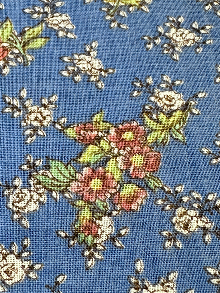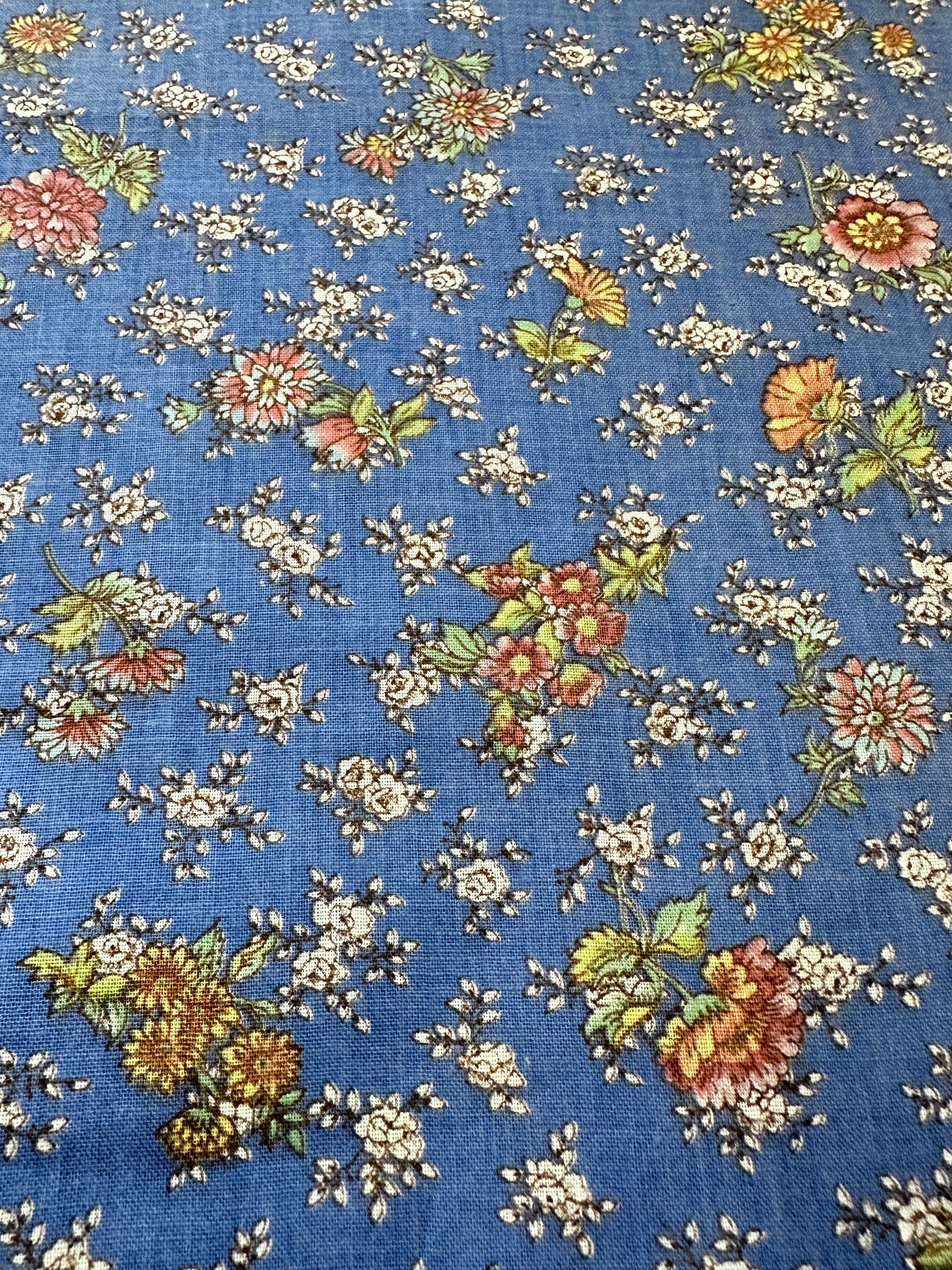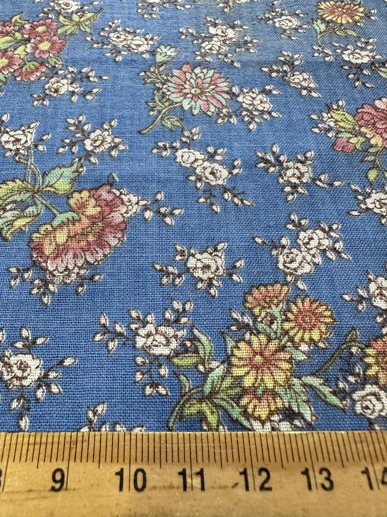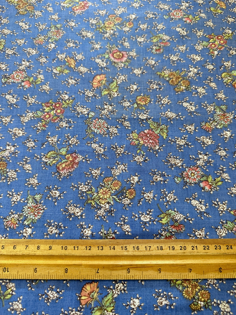 LAST PIECE Vintage Fabric 1970s Cottagecore Floral on Blue 88cm x 50cm