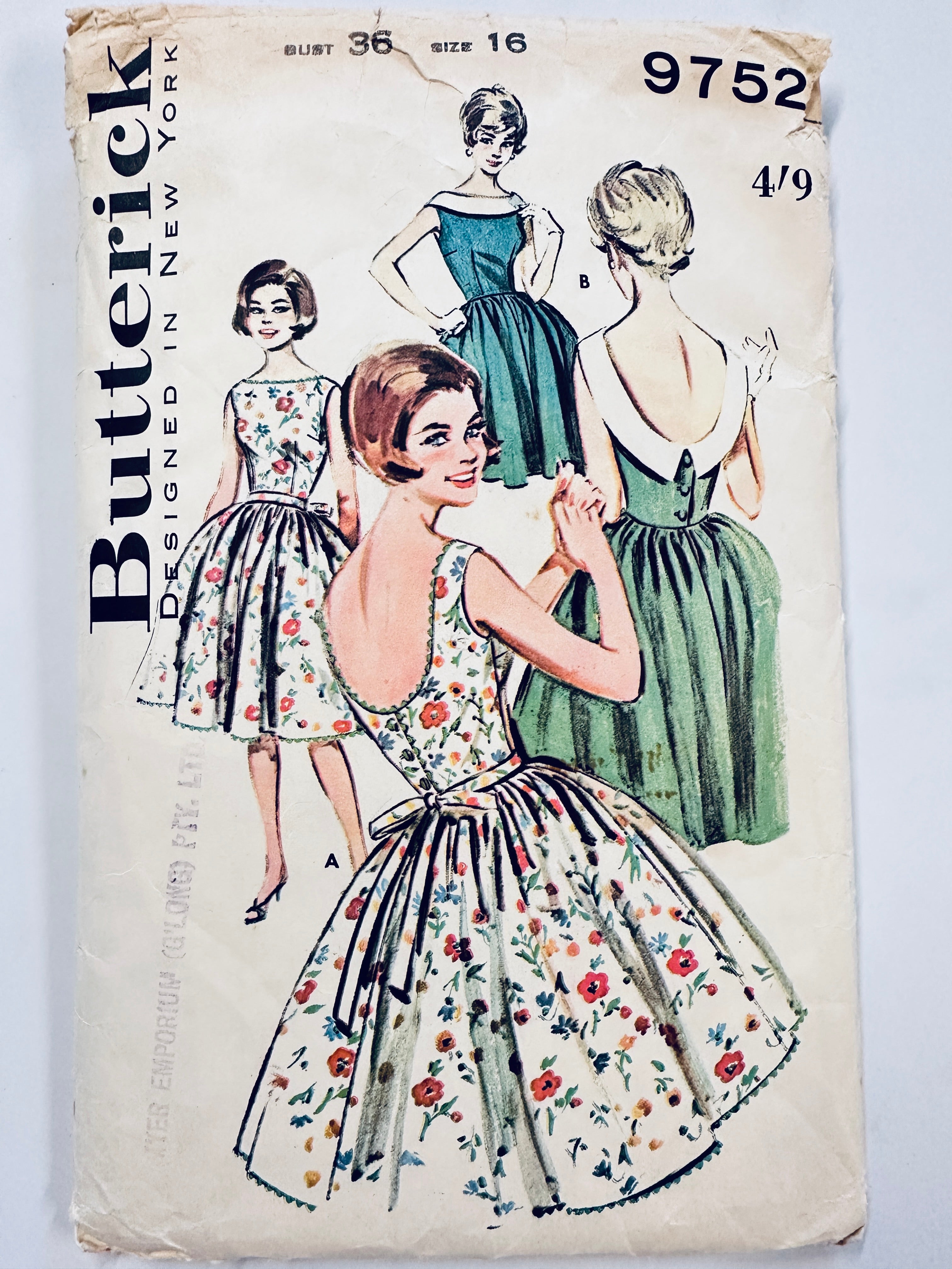 MISSES’ BACK SCOOPED DRESS: Butterick Sewing Pattern 1961 Size 16 Complete *9752