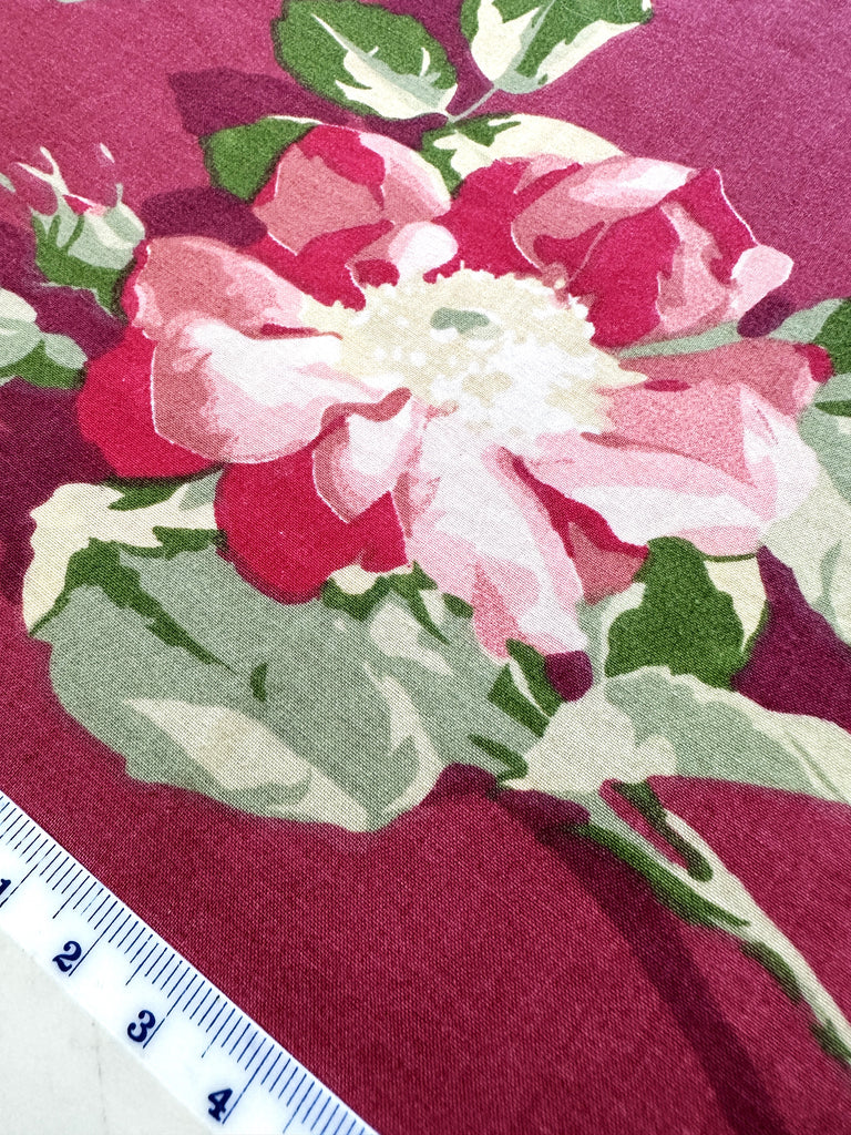 Modern Fabric Laura Ashley Cotton Blend Sheeting 2000s+ Roses on Plum 50cm Wide