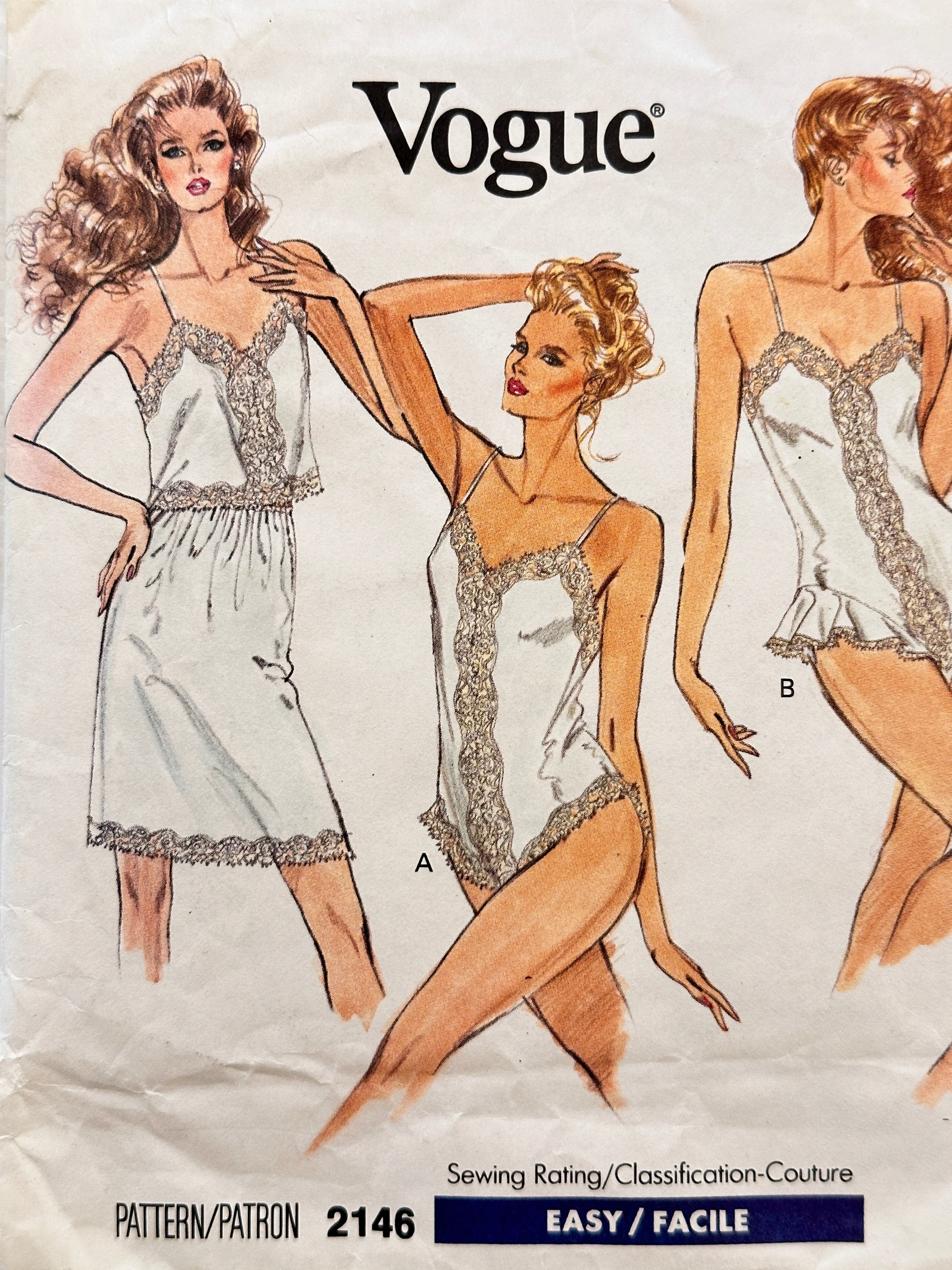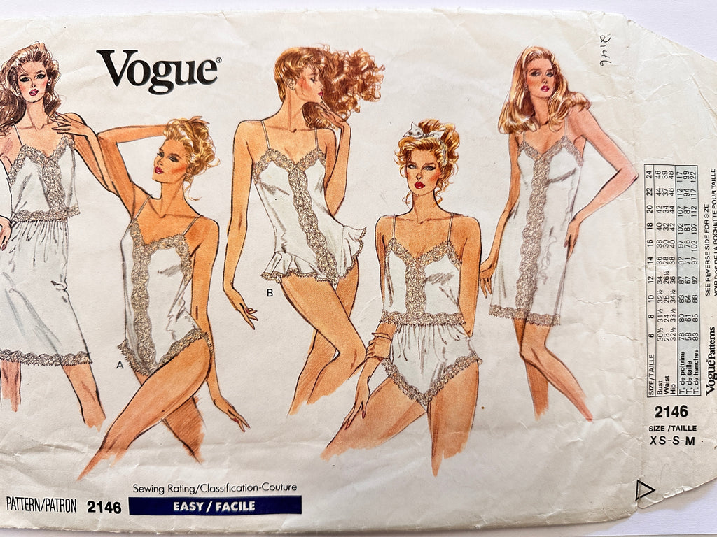 SLIP, CAMISOLE, HALF-SLIP, PANTIES & TEDDY: Vogue Sewing Pattern Lingerie XS-S-M 1988 Complete FF *2146