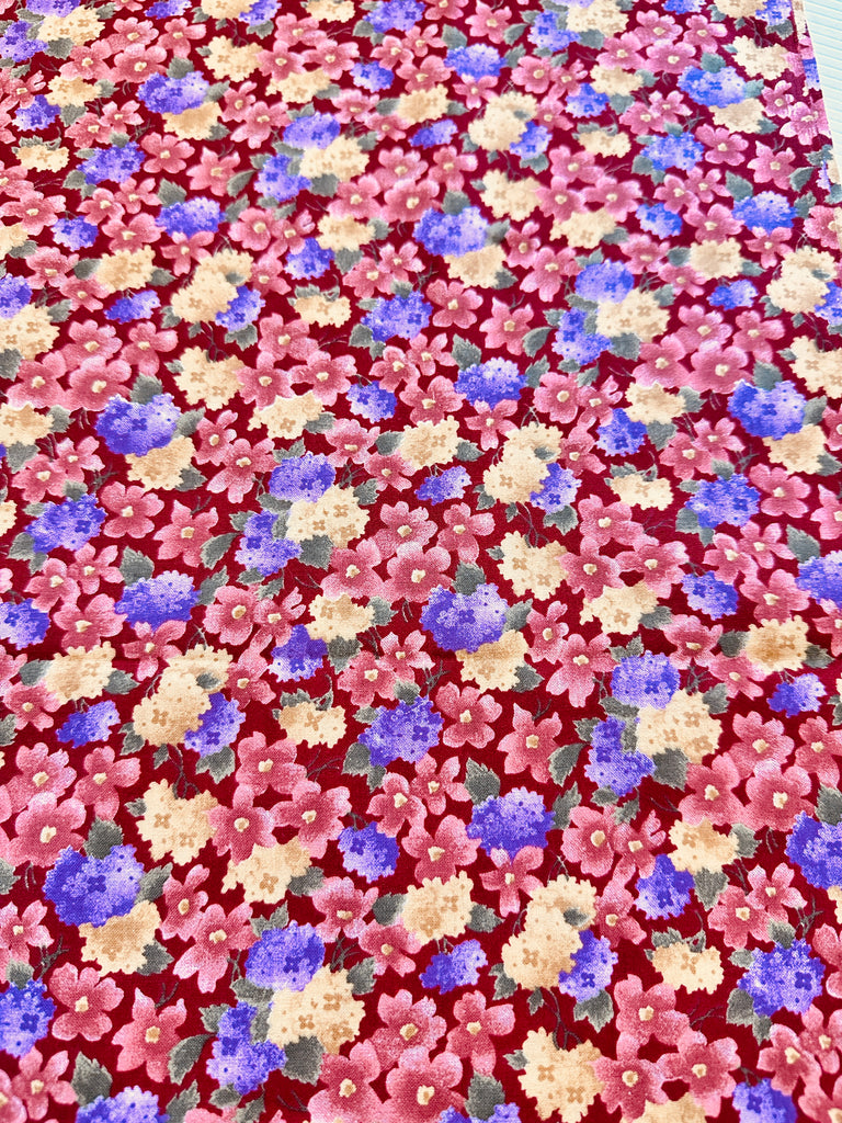 FAT QUARTER Vintage? Modern? Fabric Quilt Cotton Country Floral on a Burgundy Base 50cm x 50cm